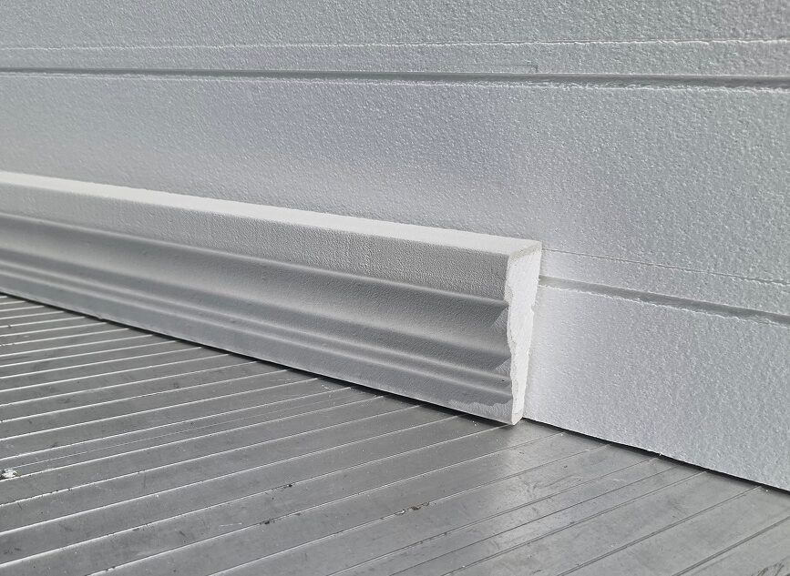 Once caulked, sealed and patched, these mouldings require a primer and 2 coats of paint. If being installed alongside render, use same specification recommended for the render paint to achieve similar finish.